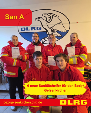 Sechs Rettungsschwimmerinnen und Rettungsschwimmer waren an den vergangenen Wochenenden zum SanA-Kurs bei der DLRG Marl.